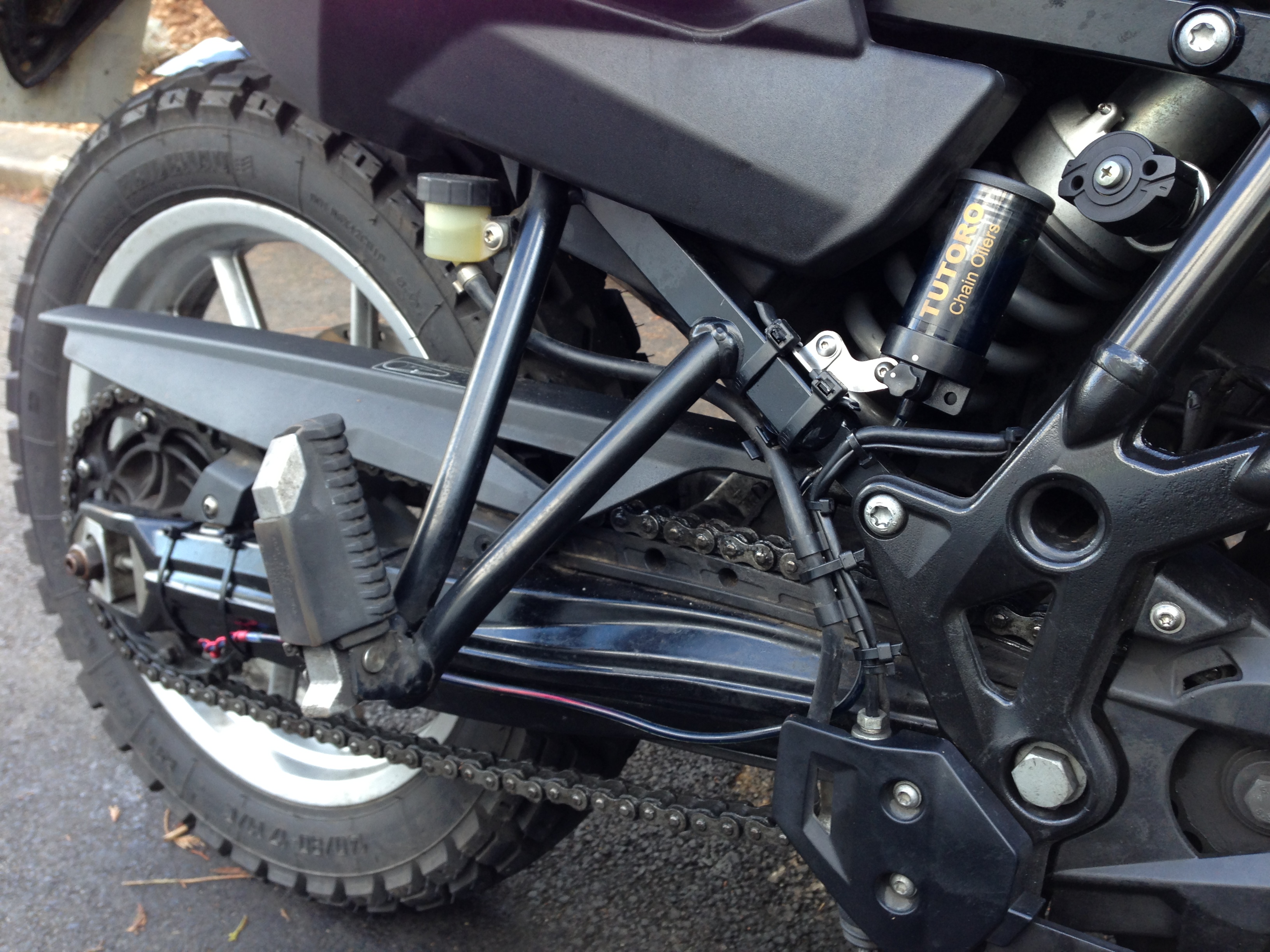 …Unfortunately, after about 2 weeks of use, the sprial metal actually snapped. I’m not sure what happened but I imagine just irregular surfaces (maybe a pot hole) must’ve stressed the metal too much. Nothing else snapped: delivery tube & tie wraps were all OK. I did contact Tutoro and they’ve referred me to their online pages where they sell spares. As a customer, slightly disappointed to hear that given that I did mention that I just bought the kit, just installed it and within just 2 weeks part of their kit is broken.