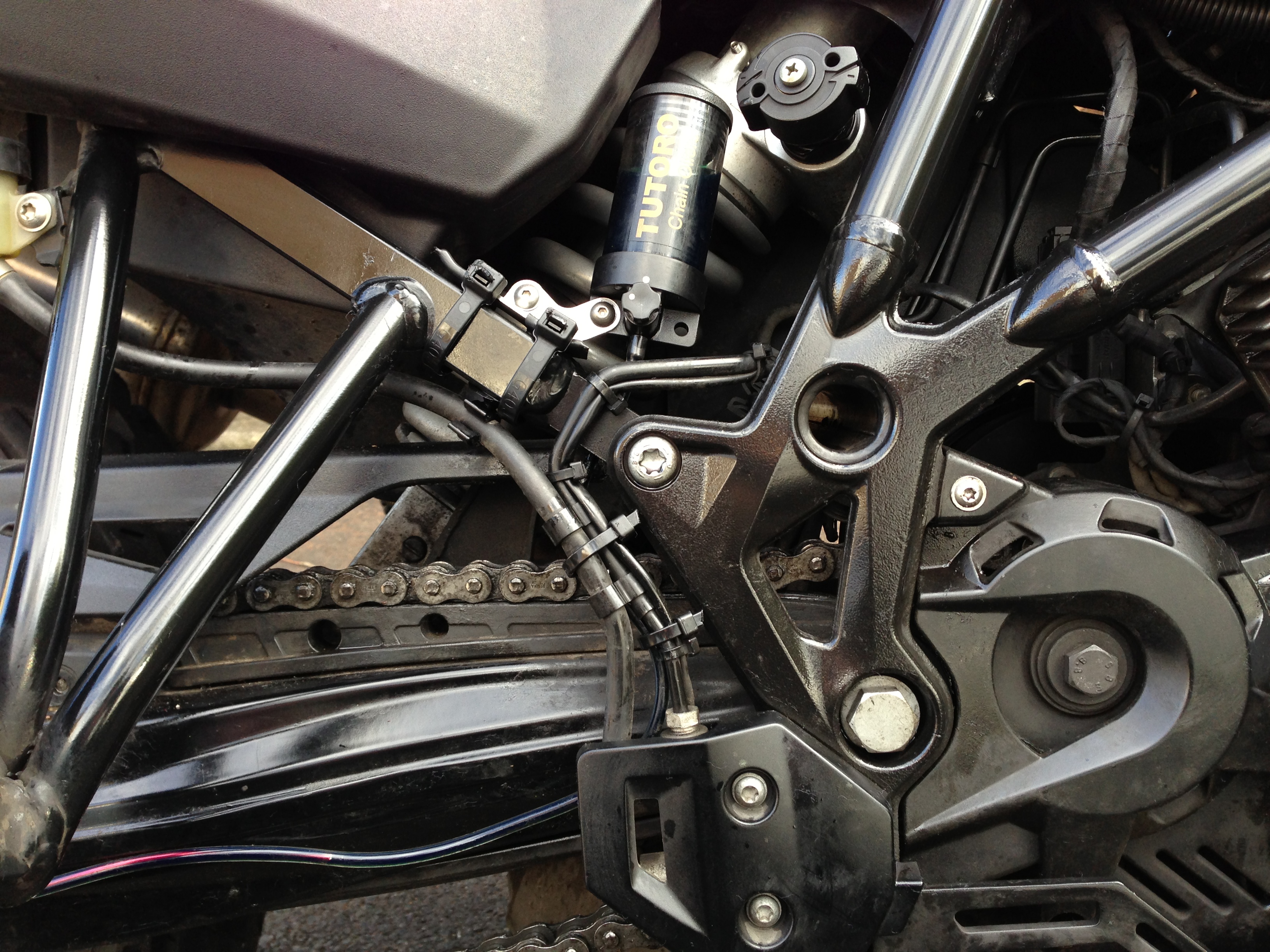 After seeing a brief news snippet in a recent issue of ‘Adventure Bike Rider’ & chatting to a fellow biker about it, I decided to cancel my Scottoiler order and order one of these instead. At £66 (excl. £4.50 shipping), it’s a saving of £30-£40 off the BMW sole-supplier kit.